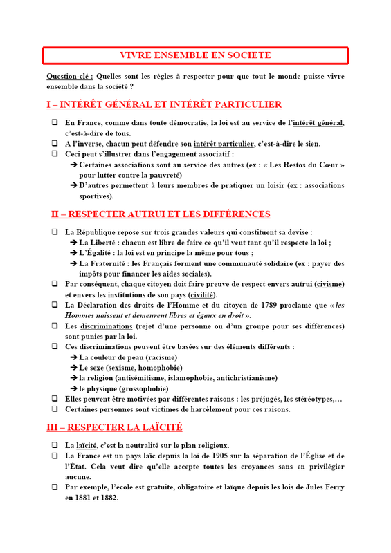 Bonjour à tous, Veuillez trouver ci-contre le chapitre d'EMC à recopier dans vos cahiers. Si le confinement est prolongé la semaine prochaine comme on peut s'y attendre, je mettrai en ligne le prochain chapitre le lundi 30 mars. Bon courage à tous !